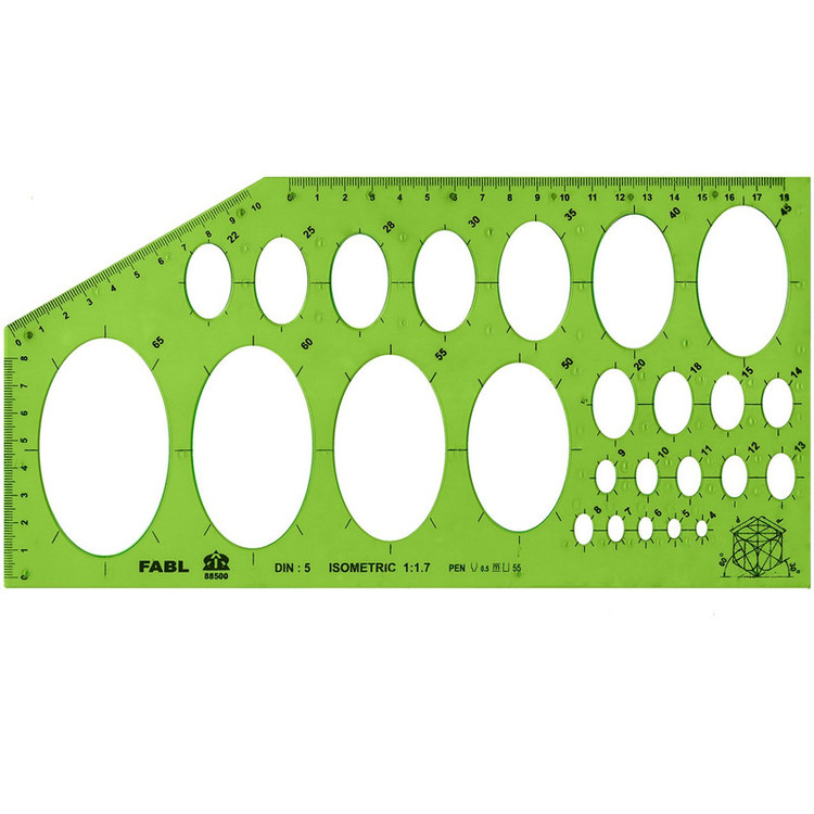 - شابلون بیضی برای رسم بیضیها با اندازههای مختلف.