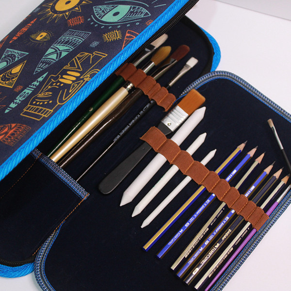 کیف 3 لت طرحدار، مناسب برای نگهداری و حمل انواع قلموهای نقاشی، ابزارهای هنری و طراحی.