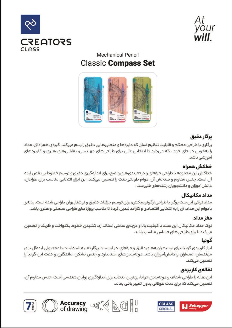 ست پرگار ٧ تکهی کلاسیک سی کلاس