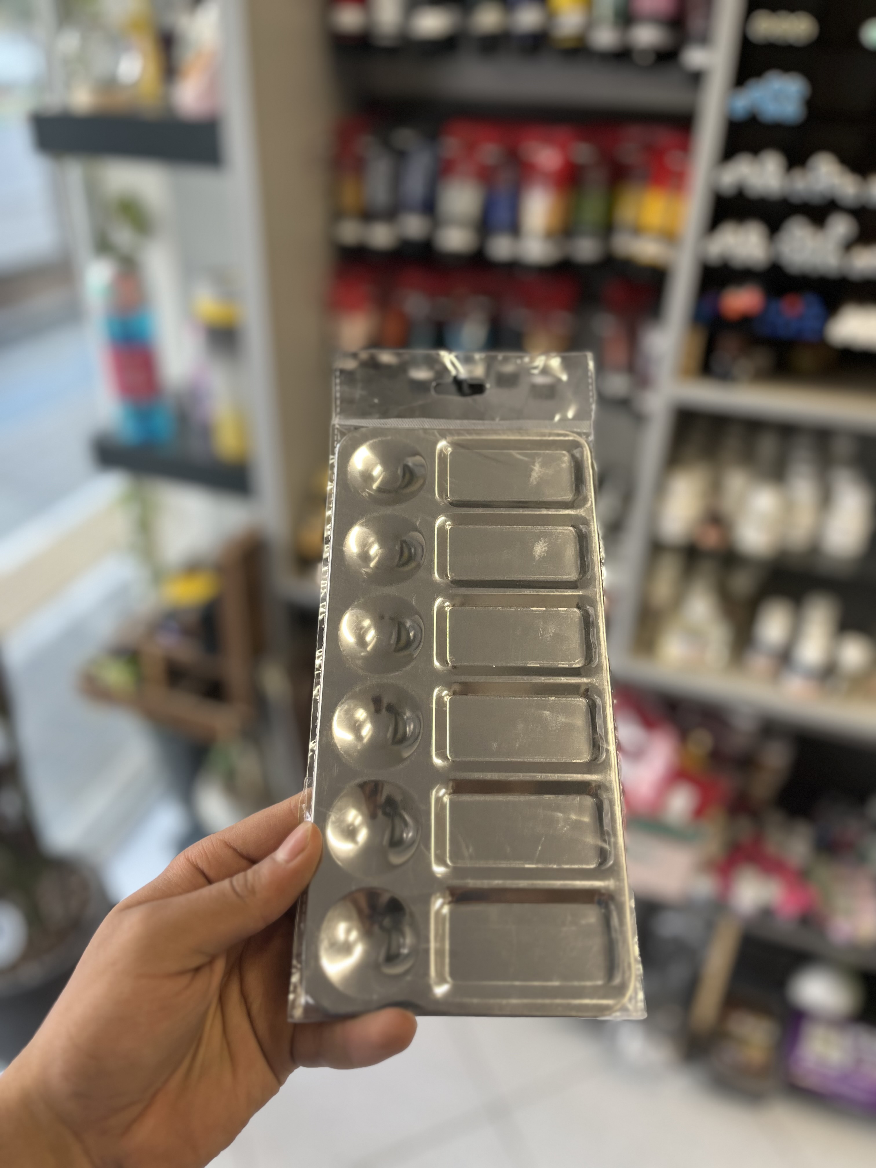 پالت فلزی مستطیل پالت فلزی شکل : مستطیل دارای 12خانه جنس : آلومینیوم بسیار سبک و کاربردی اندازه : 23*11 سانتی متر وزن : 100 گرم