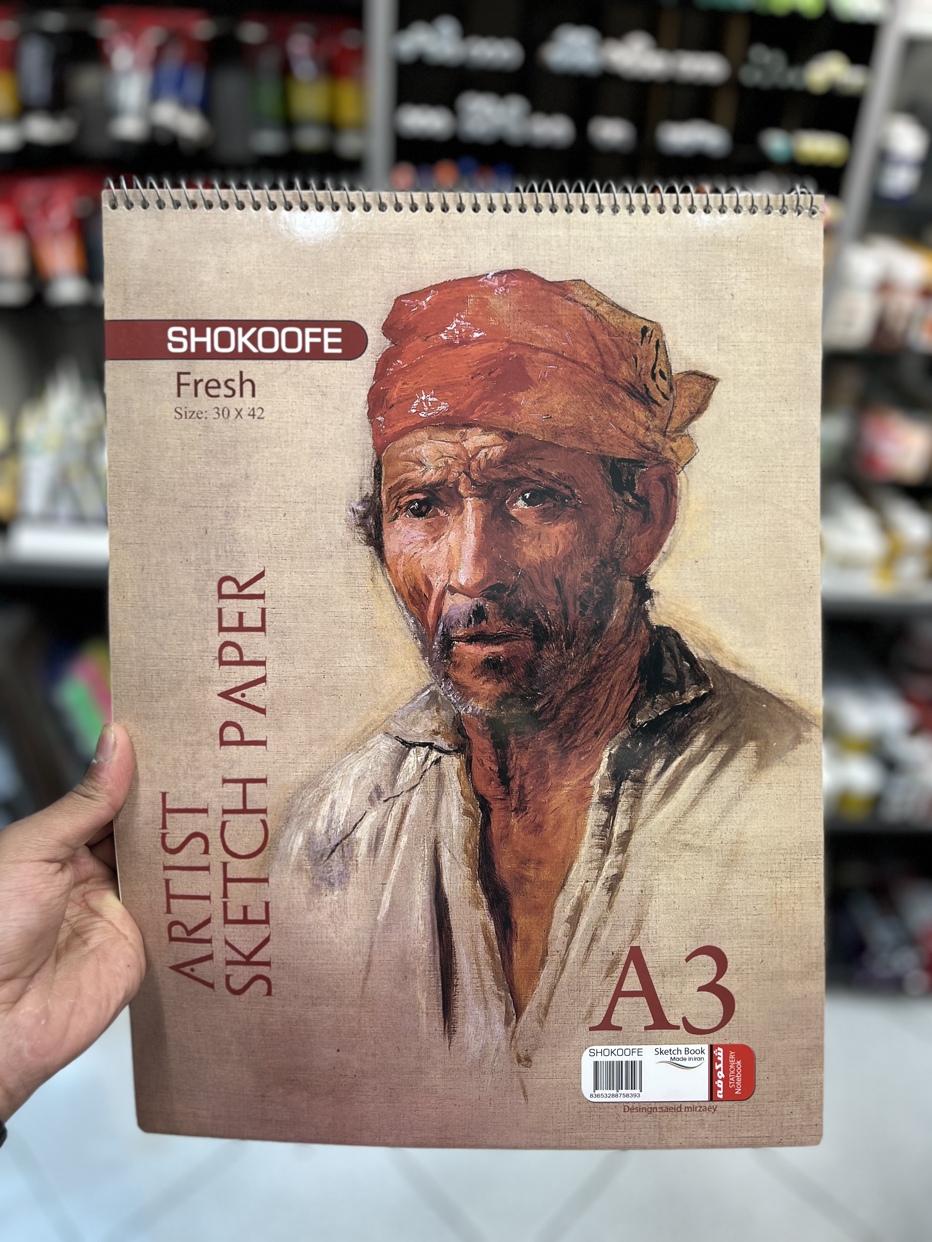 سایز: A3 نوع کاغذ: کاغذ پارس (کرم رنگ) مخصوص طراحی نوع صحافی: فنر دوبل سیمی روی جلد از: مقوای گلاسه انعطافپذیر پشت جلد از: مقوای کرجی ضخیم